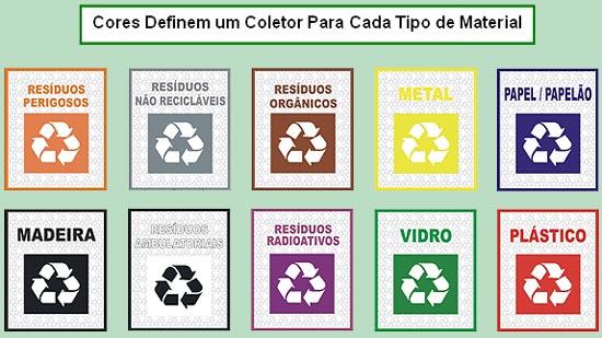 Cada tipo de material possui uma cor