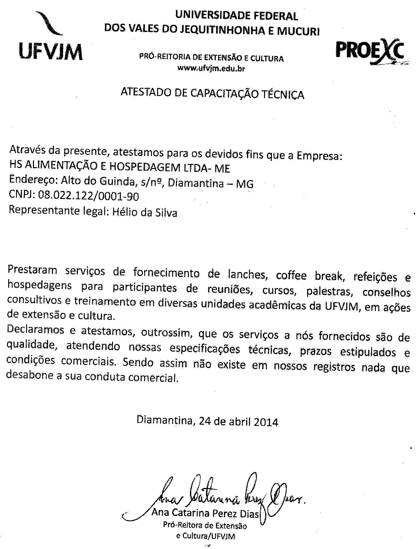 Atestado de Capacidade Técnica UFVJM Atestado de Capacidade Técnica UFVJM