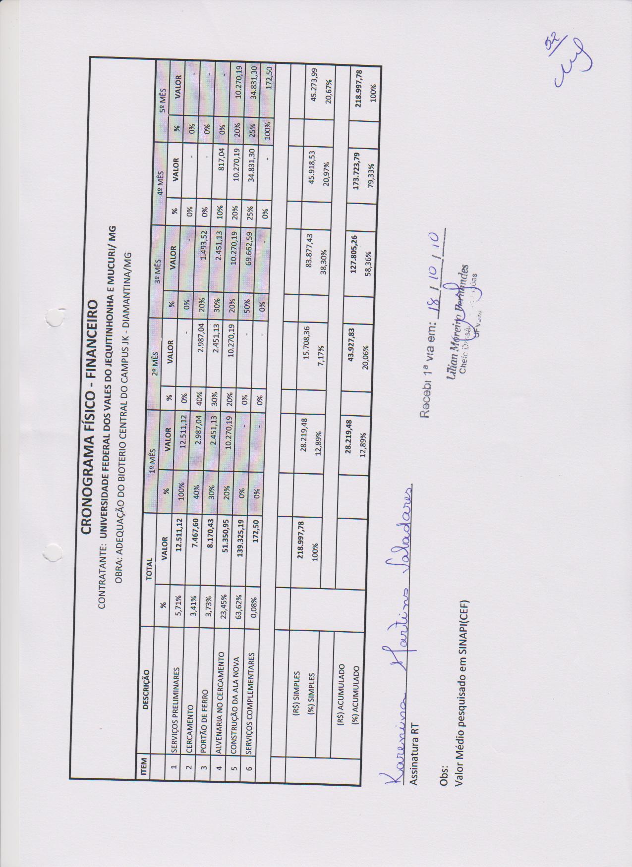 Planilha e Cronograma Físico Financeiro