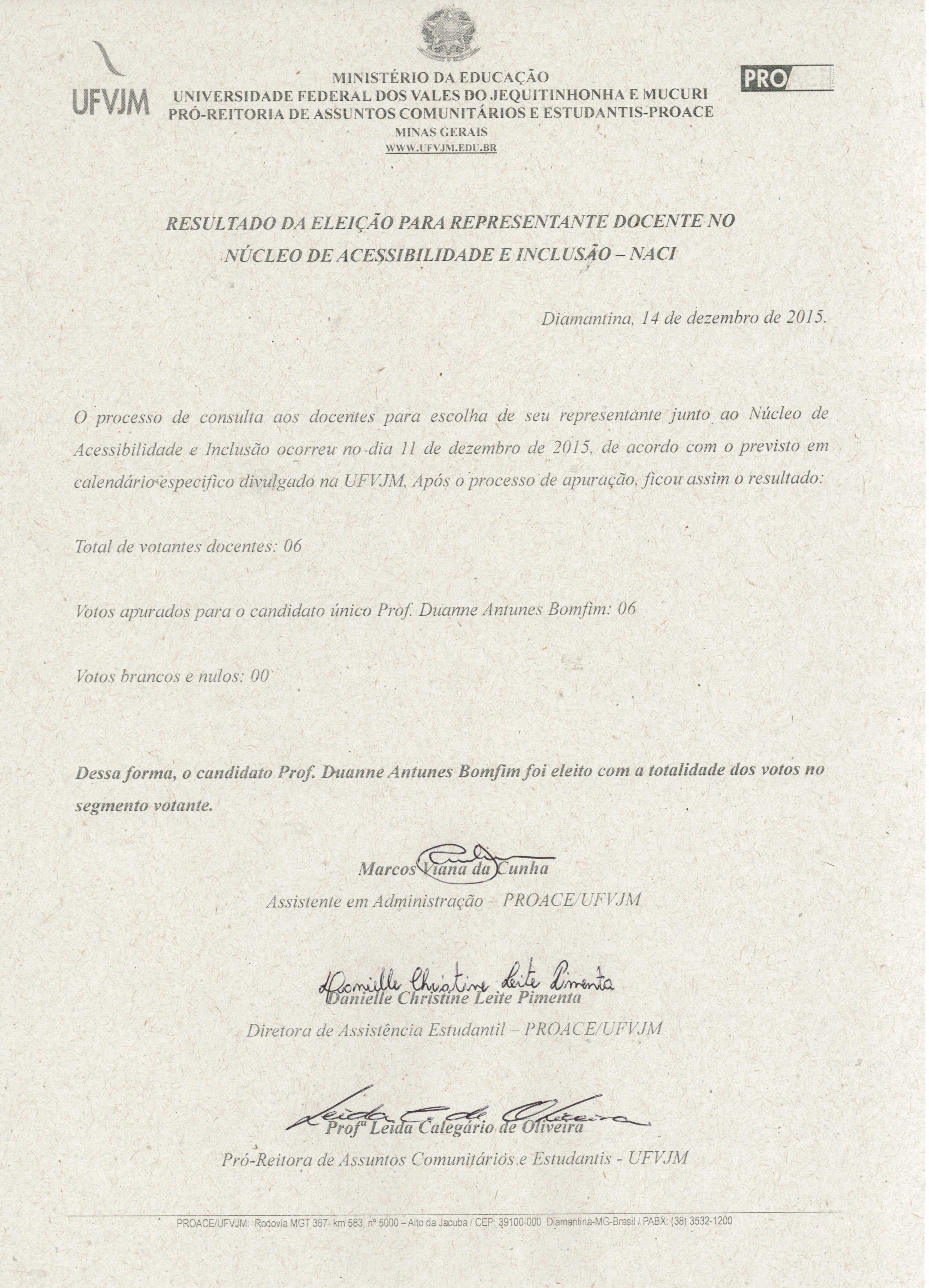 Resultado da primeira etapa do edital Proace-UFVJM 03-2019