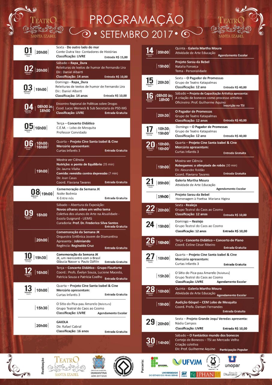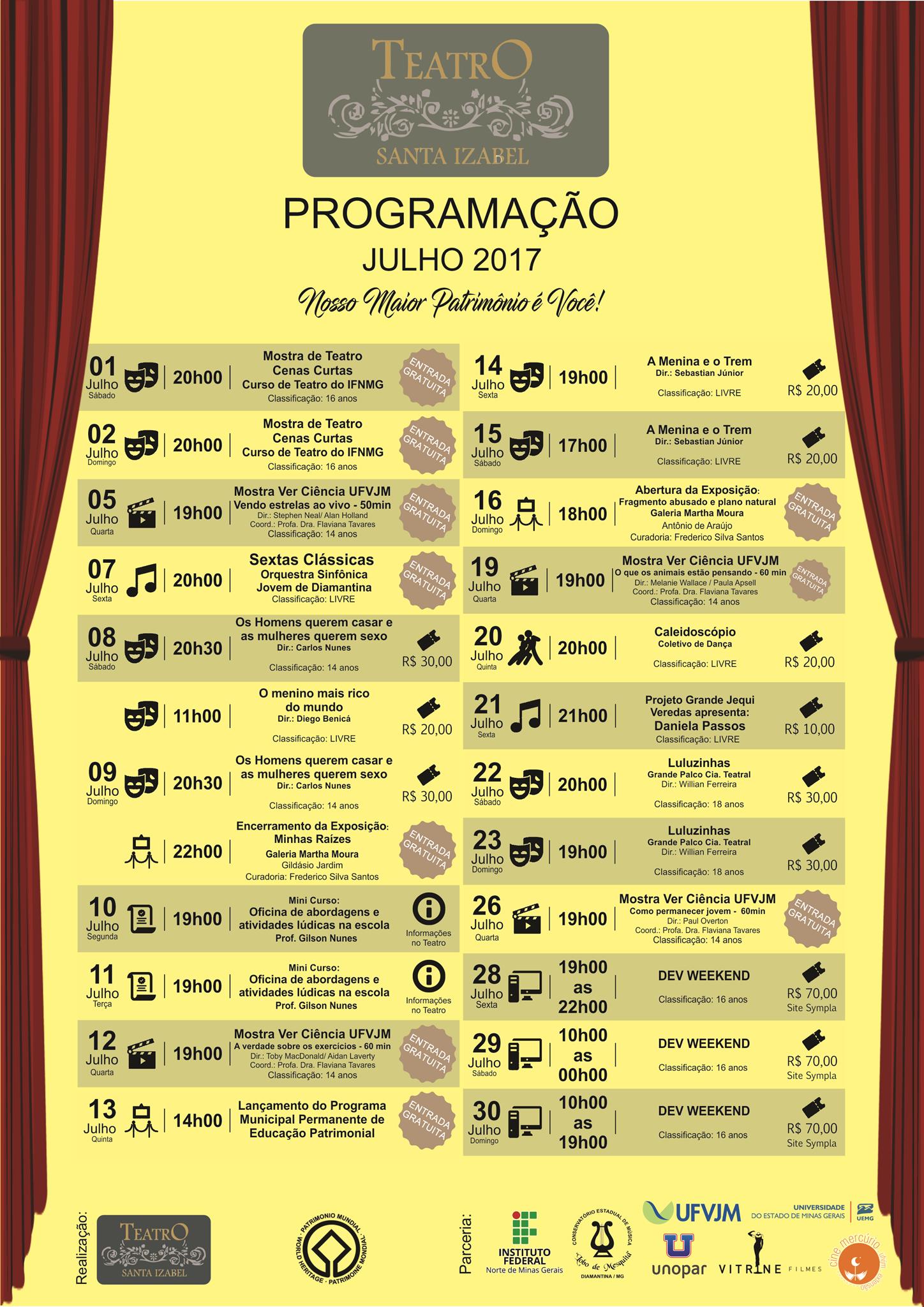 Programação completa de JULHO 2017 do Teatro Santa Izabel.