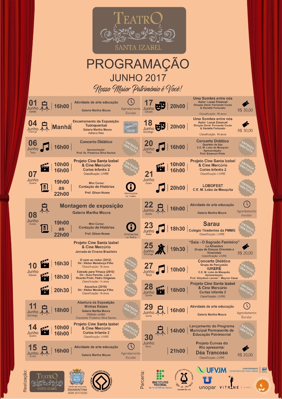 Programação completa de JUNHO 2017 do Teatro Santa Izabel.