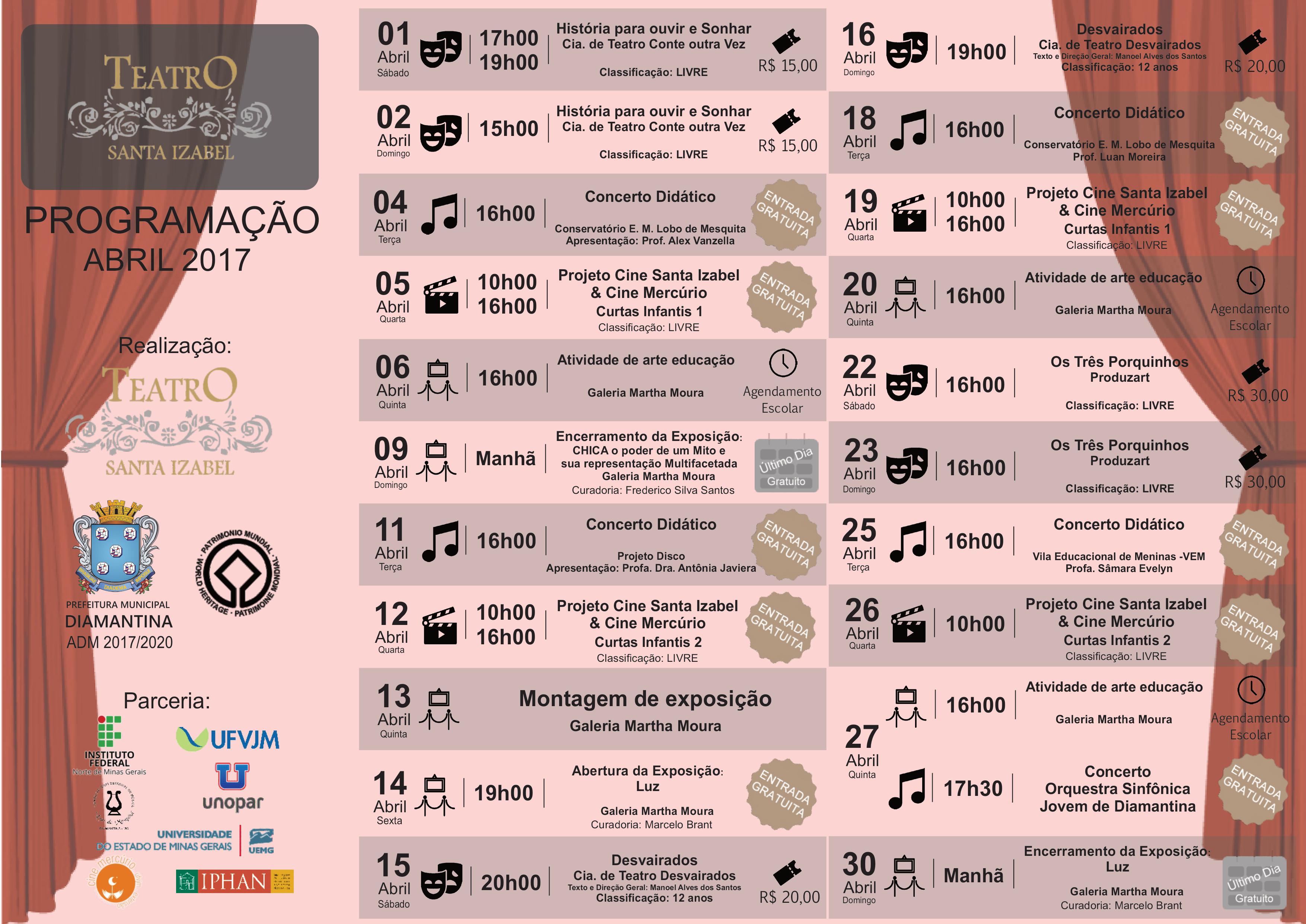 Divulgada a programação do Teatro Santa Izabel em Diamantina