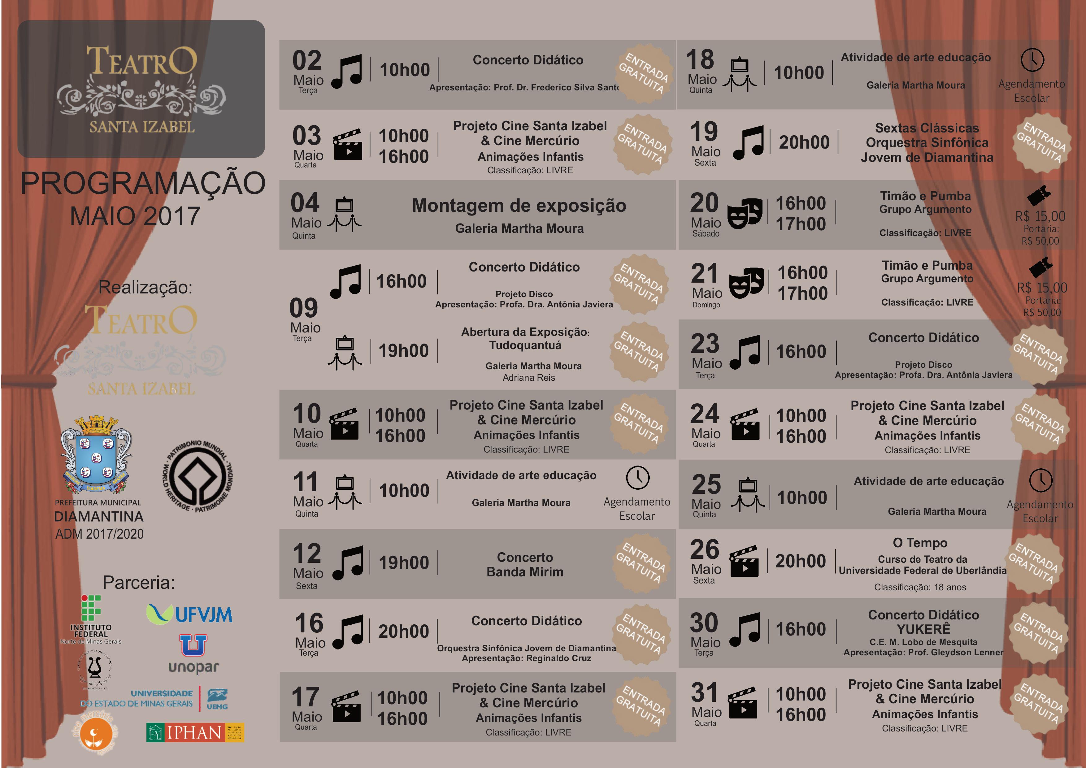 Divulgada a programação do mês de maio do Teatro Santa Izabel em Diamantina