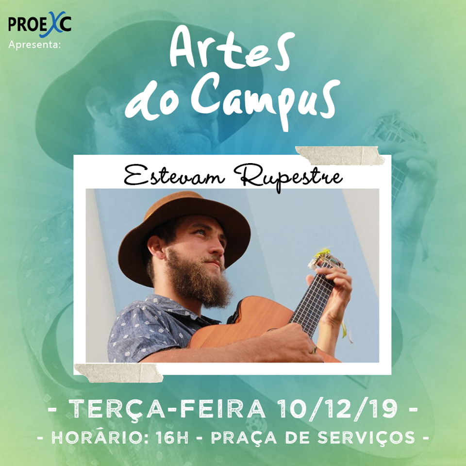 O músico e compositor Estevam Rupestre é a próxima atração da ação cultural Artes do Campus. A ação é promovida pela Diretoria de Cultura da Pró-Reitoria de Extensão e Cultura. O projeto objetiva promover a produção artística e cultural no campus universitário.